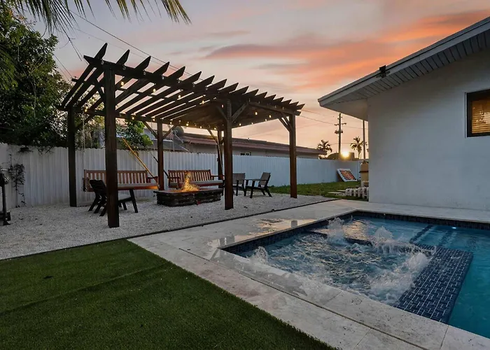 Miami Private Pool Home 15 Min To Beach - Aventura heeft een complete keuken met een koffie/theezetapparaat, een oven en keukengerei. De dichtstbijzijnde luchthaven is Fort Lauderdale - Hollywood International, op 20 km van de villa, en Bayfront Park treinstation is op een afstand van 19 km.